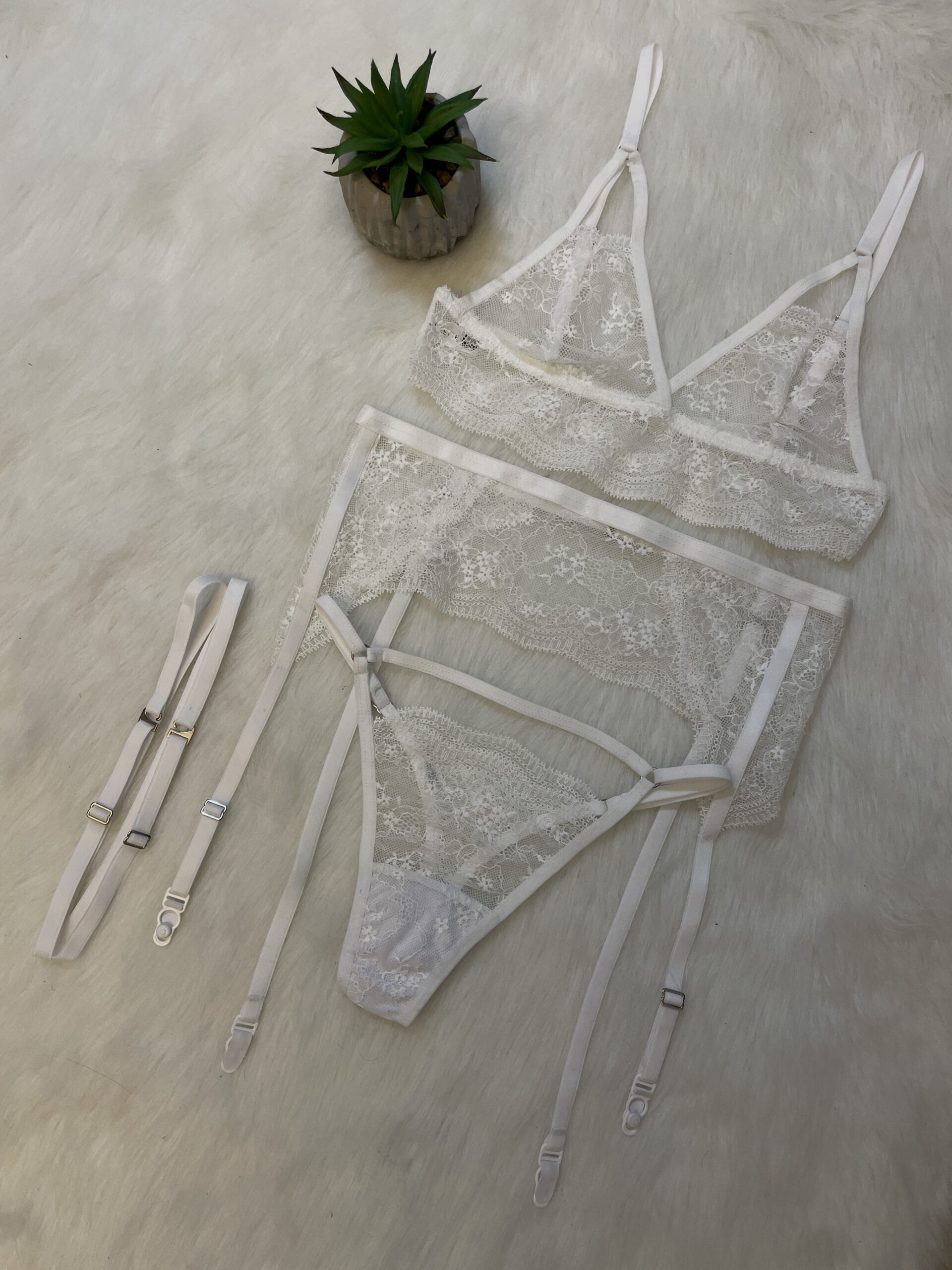 Set Rubi, conjunto de top y tanga regulable con portaligas de encaje elastizado. Con breteles regulables INCLUYE LIGAS.